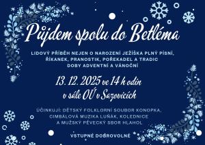 Opět po roce Vás srdečně zveme na Vánoční jarmark tentokrát v sobotu 6.12.2025 již od 14:00 hodin. Přijďte se s námi naladit na Vánoční atmosféru. Tešíme se na Vás.
