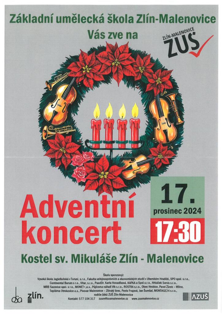 Základní umělecká škola Zlín - Malenovice Vás srdečně zve na Adventní koncert.