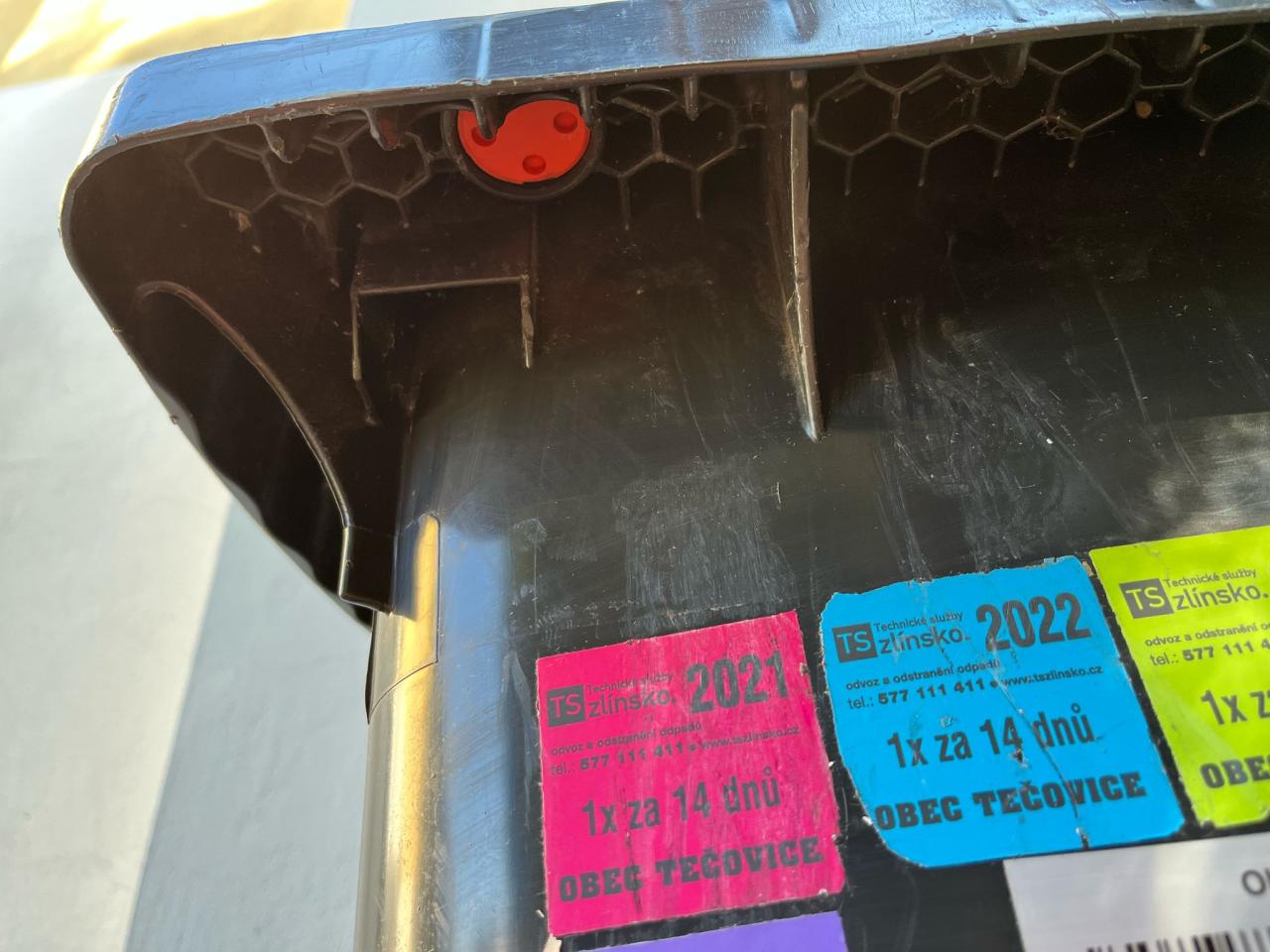 Očipovaná nádoba bude označena na víku nálepkou hotovo. Pokud budete mít nádobu již očipovanou není nutné v příštím termínu čipování tuto nádobu vyvážet před dům.