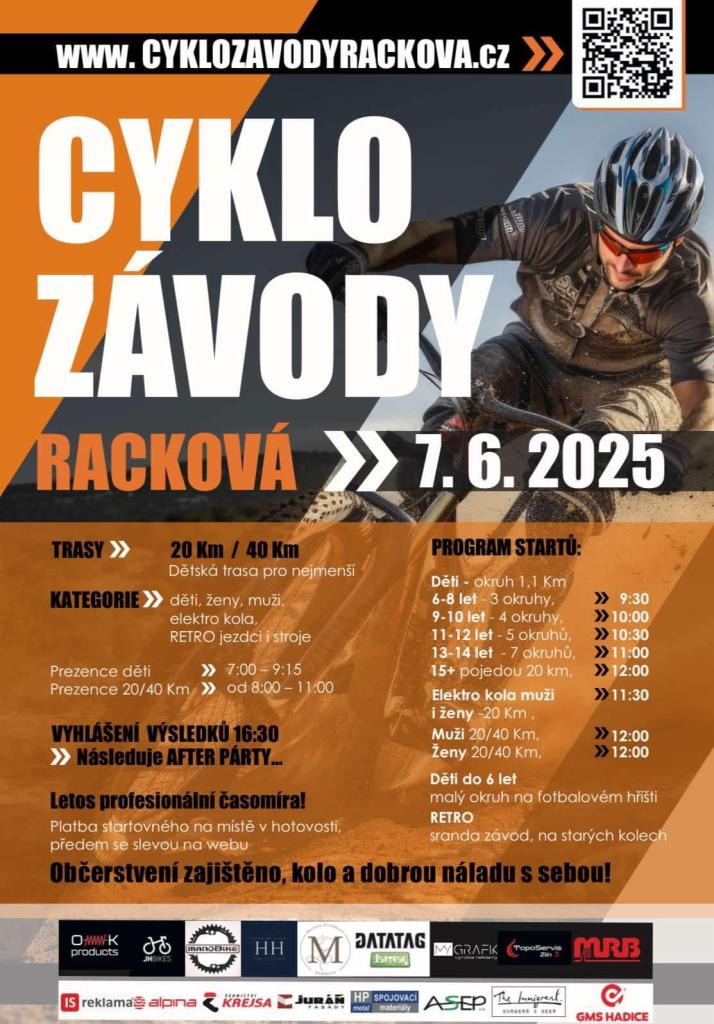 Cyklozávody Racková se konají 7.6.2025, všichni jsou srdečně zváni.
