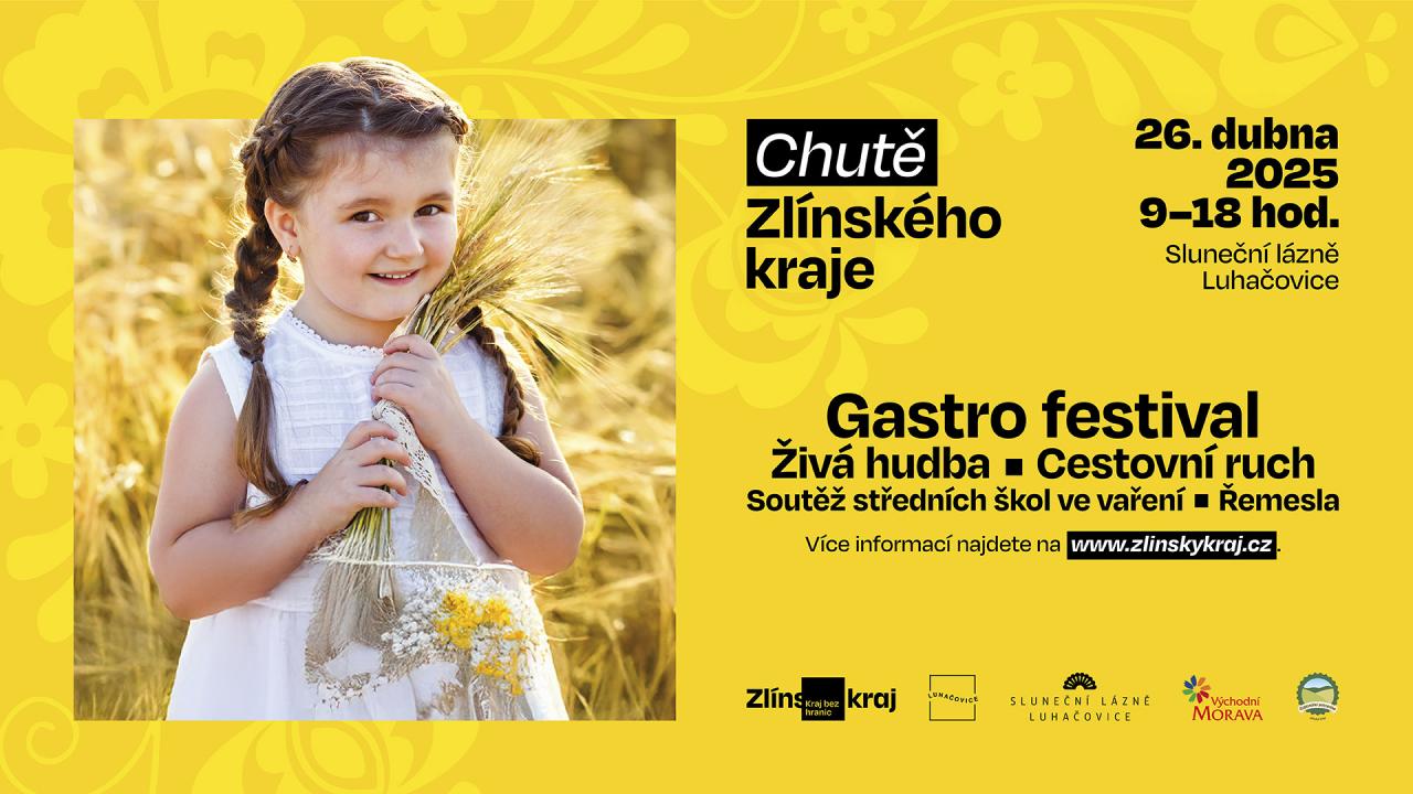 Zveme vás na Gastro festival, který se uskuteční 26. dubna 2025 v Luhačovicích od 9 do 18 hodin. Těšit se můžete na živou hudbu, soutěž středních škol ve vaření a mnoho dalšího.