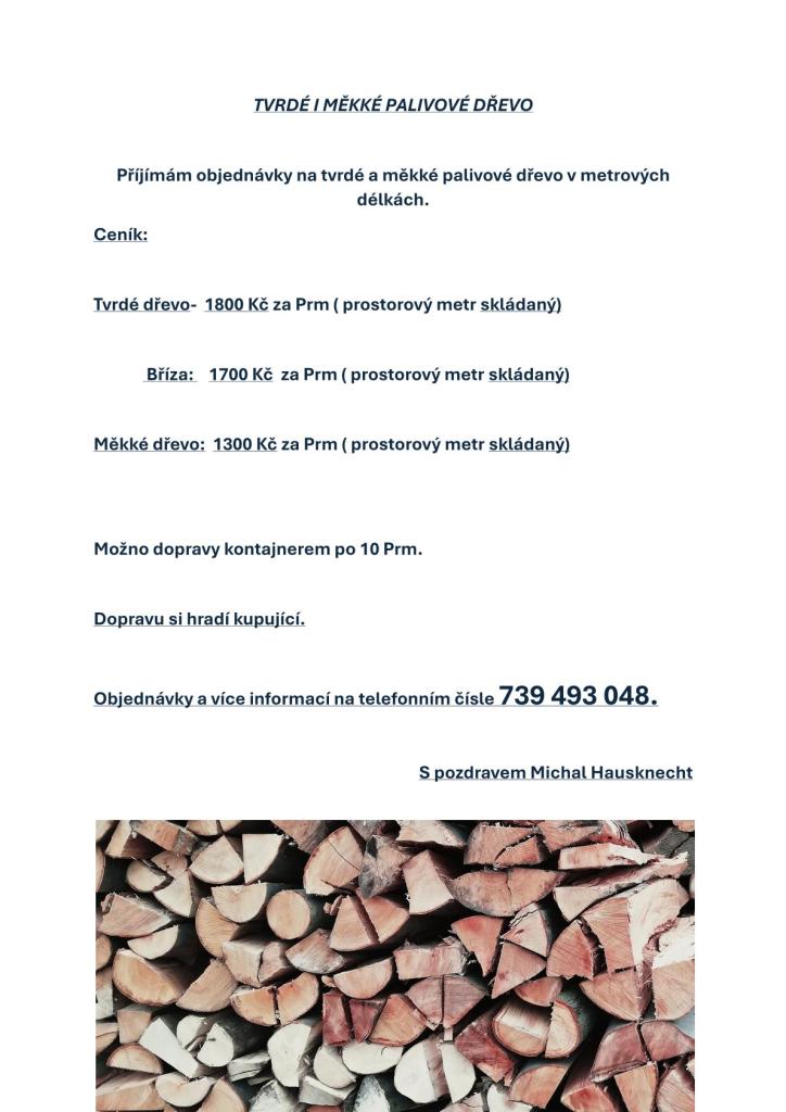Pan Michal Hausknecht již přijímá objednávky dřeva.