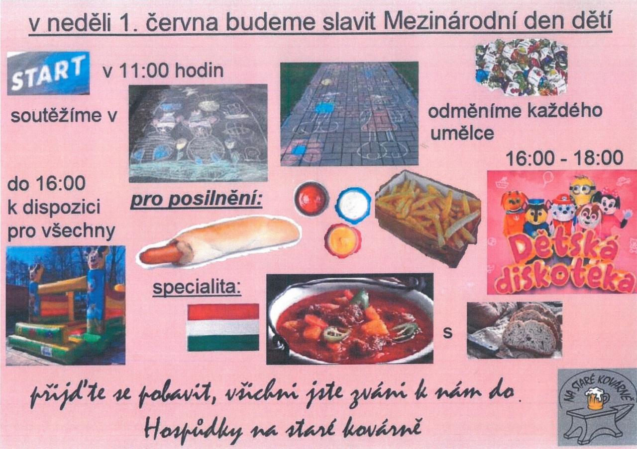 V neděli 1. června Vás zveme na starou kovárnu kde se uskuteční oslava Mezinárodního dne dětí, která začíná v 11:00 hodin.