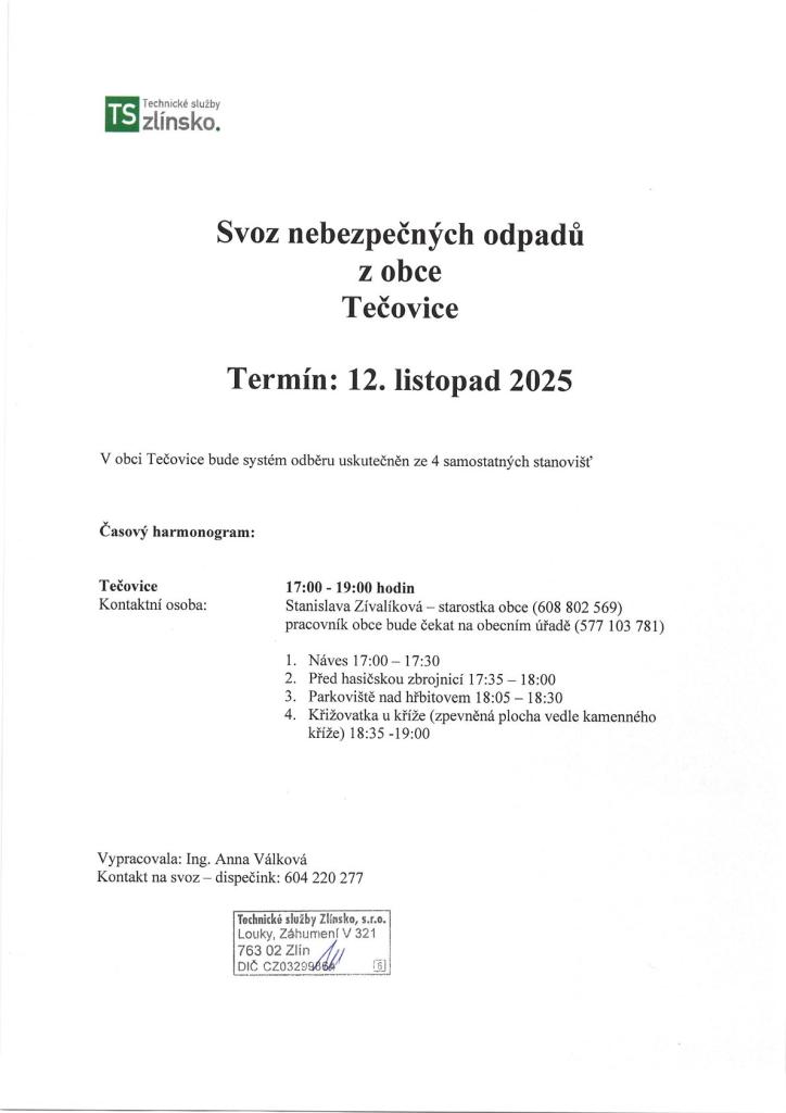 12.listopadu proběhne v naší obci Svoz nebezpečných odpadů.