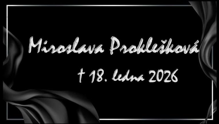 V hlubokém zármutku oznamujeme, že nás navždy opustila paní Miroslava Proklešková. Zemřela v neděli 18. ledna 2026 ve věku 77 let.